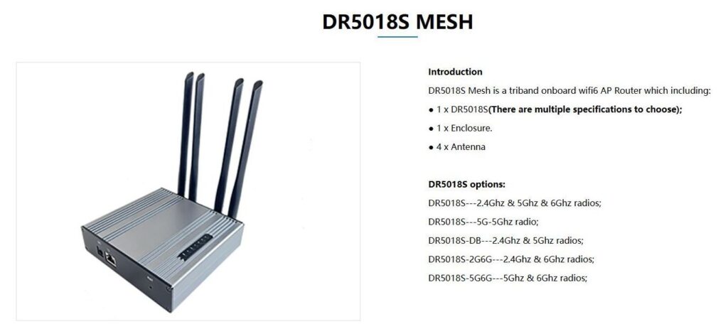 xperience next-level WiFi 6 tri-band performance with the DR5018S Mesh – designed for industrial, enterprise, and large-scale applications. Seamless connectivity, EasyMesh support, and robust hardware all in one compact solution.