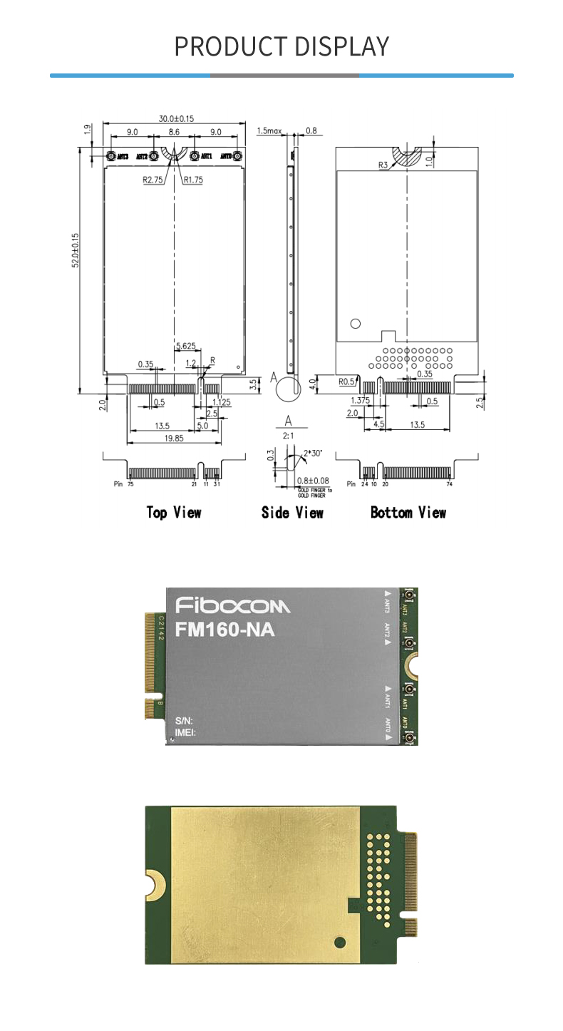 FM160-NA supports 3GPP Release 16 and NR CA. It has LTE Cat-19 fallback and support for FDD & TDD ENDC. With standard M.2 interface it makes it convenient for customers to update products quickly and respond to the commercial needs of the market.